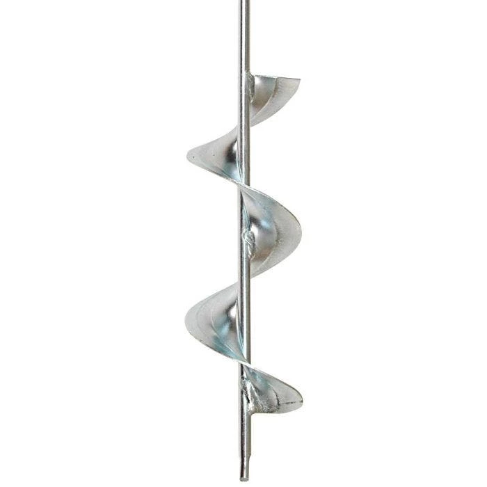 This steel auger fits any 3/8 inch or larger drill with its circular shank.