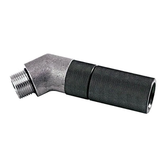 The AirSpade 2000 Series 45 deg; Angle Adapter has a knurled surface that provides a superior grip for a tight connection, male/female threaded connections, and is constructed with anodized aluminum.