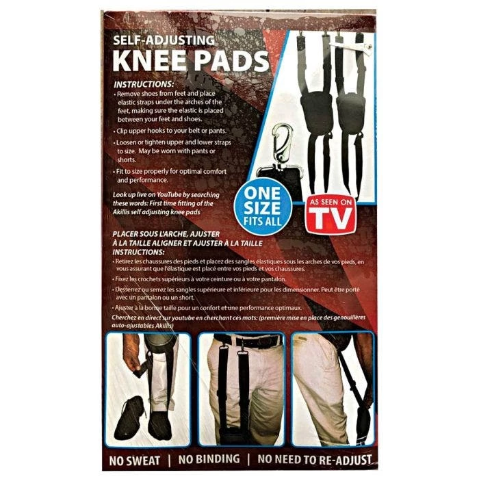 Akillis engineered these self-adjusting knee pads to solve the 4 common problems with conventional knee pads. Binding: The straps on most knee pads often bind behind your legs. This binding causes discomfort and can lead to chafing.