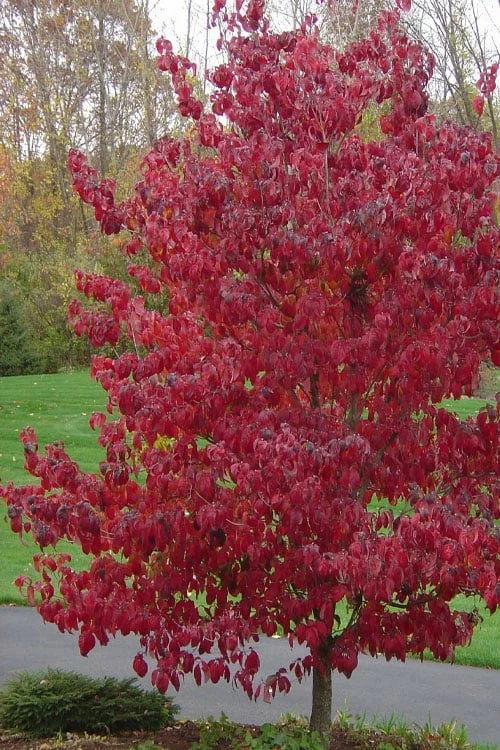 A new distinct cultivar introduced by the University of Tennessee, the ‘Appalachian Joy’ Dogwood is prized for her supernumerary, long-lasting multi-bracted flowers, which simply means she produces a LOT more flowers than the average dogwood, and that the flowers are semi-double, meaning up to 8 petals rather than the standard 4 on most other varieties. Truly a site to behold in spring flower – you have to see it to believe it! You might also be interested to know that Appalachian Joy is documented as the white flowering dogwood with the strongest resistance to powdery mildew. She has a broadly columnar form to 15 feet tall in 10 years and maybe 20 feet in 20 years clothed in rich, bright green leaves that turn a variety of attractive red shades in the fall. Relatively fast growing for a dogwood and a perfect fit as an extremely showy specimen in smaller gardens spaces or in groupings where space will allow.