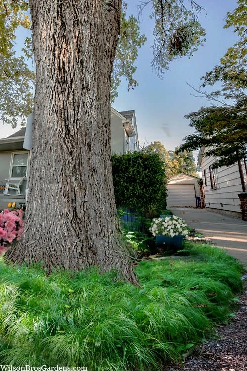 An outstanding North American native perennial grass that creates a swirling carpet of green, the Appalachian Sedge makes a very attractive groundcover or border along paths or around patios in shade to part shade. Morning and evening sun are fine but direct afternoon sun should be avoided. This ornamental grass forms a mounded tuff of thread-like leaves similar to fiber optic grass to about 10 to 12 inches tall and wide of slender. Small clusters of wheat colored flowers at the tips of leaves add interest in mid summer. When planted in grouping or in mass on slopes the weeping and swirling foliage flows in a water-like movement. It’s a great lawn substitute in shady dry sites including clay soils and is deer and rabbit resistant and drought tolerant. You can’t go wrong with this wonderful native!