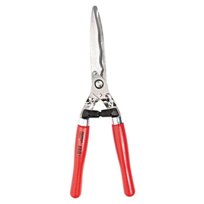 The Berger Wavy Blade Hedge Shear is made with high quality forged steel and chrome-plated wavy blades that make this shear extremely durable and long-lasting. The wavy blades give more surface area and cut extremely efficiently, preventing plant material from slipping down the blades during cut. A sap groove on each blade prevents the blades from sticking for a continual smooth cut action. The blades are self-sharpening and the tension knob can be adjusted quickly and easily. Outfitted with traditional wood handles that give this tool a great feel. Made in Germany. 23-5/8″ overall length, weight 2.2 lb