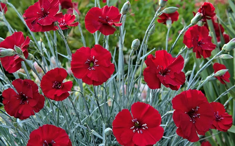 Treat yourself to a little slice of heaven when you add this beautiful Dianthus to your landscape. The American Pie Series is bred for blooms that are carried on sturdy stems that do not flop. They are great for picking and long lasting cut flowers. ‘Cherry Pie’ features large, rich deep red blooms above a tidy, compact mound of silver foliage. The blooms are fresh, unique, and fun. They also have a delectably spicy scent. It’ll bloom from early summer to early fall. Butterflies and other beneficial pollinators will be especially pleased.