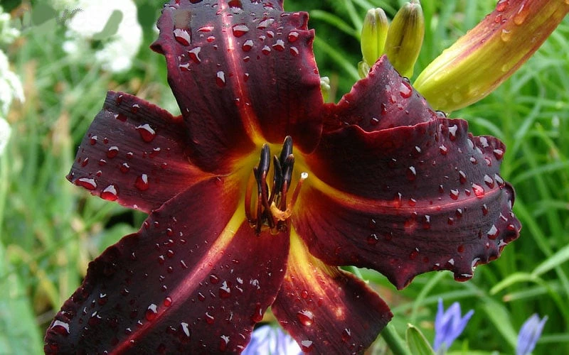 Growing in a clump 24 to 30 inches tall and 18 to 24 inches wide, the Chicago Blackout Daylily is ideal for use as an accent or in groupings, stunning mass plantings, or as a border along paths and walkways in landscape borders. Also nice as an accent or centerpiece in mixed container gardens. A fine addition to daylily gardens, perennial gardens, fragrance gardens and red or black theme gardens.
