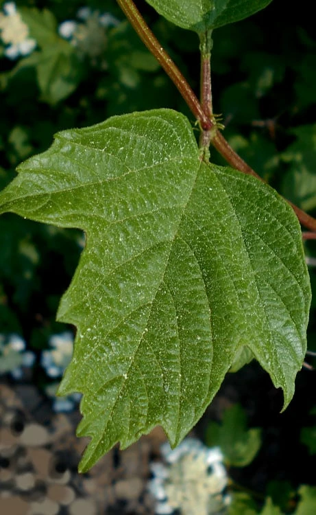 The Cranberry Viburnum, also known as the American Cranberry Bush, is actually not a cranberry at all, though its fruit strongly resemble cranberries in both appearance and taste. They also mature in the fall, as cranberries do. In late spring to mid summer it produces abundant lacecap clusters of showy white flowers that are followed in fall by bright red juicy and tasty berries with a sweet but tart flavor like cranberry and that are rich in vitamin C. The fruits can picked and eaten right off the bush or used to make preserves, jams, jellies, sauces, etc., which make delicious condiments for meat. If you don’t eat the berries the birds will!