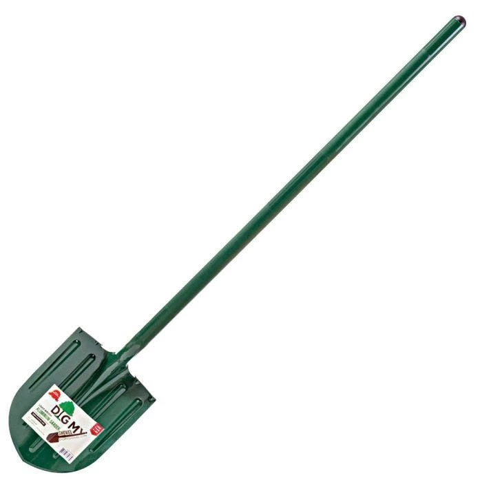 Dig My Shovel makes the lightest garden shovels on the market. This round-point shovel features a unique aluminum alloy construction. The shovel blade measures 12 inches long and 9 inches wide and has a turned foot step. They finish this tool by welding a 40-inch long, 1-1/4-inch diameter handle directly to the blade. This shovel is green in color. Click HERE for square-point options.