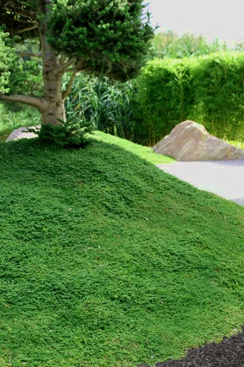Growing only 2 to 3 inches tall and spreading 18 to 24 inches wide, Herniaria glabra is ideal for use as a lawn substitute, as a groundcover or underplanting around shrubs, trees and other plants, as a border along paths and walkways, or as a soil cover in container gardens. A fine underplanting for small trees such as Japanese maples. Emerging flower bulb plants will pop right through it in spring.