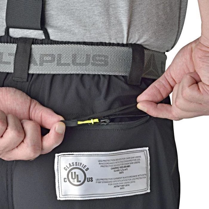 Elvex ArborPants are designed with a patented smart asymmetrical design and ProlarLite protective padding, which provides extended protection on the left side of the legs. They eliminate straps and loose catch points associated with chaps, making them safer and more comfortable to wear while climbing or working around chippers and other moving equipment. Elvex ArborPants are also tested and certified by Underwriter Laboratories for leg protection specification: ASTM F 1897 2008 and cut resistance test method: ASTM F 1414.