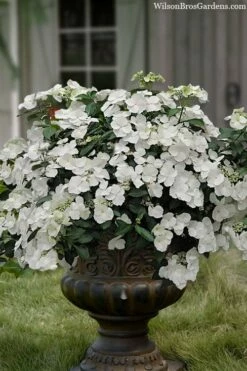 Growing in a mounding and cascading form 4 feet tall and equally as wide, the Fairytrail Bride Hydrangea is ideal for use as a specimen, in groupings or as border in landscape beds and home foundation plantings. Perfect for use at the top of walls where its stems will cascade over the edge. Also excellent as a solo or combined with other plants in large containers or hanging baskets. A fine addition to Hydrangea gardens, white theme gardens, cut flower gardens and cottage gardens.