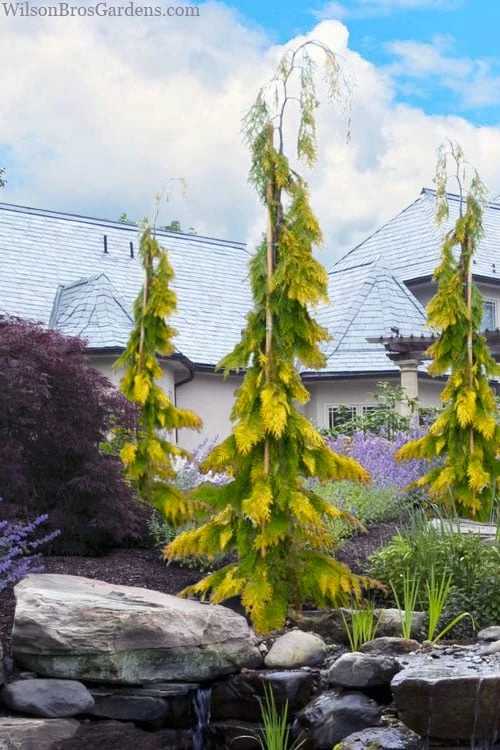The Filip’s Golden Tears Lawson Cypress is ideal for use as a focal point specimen or in spaced grouping with plants arranged at least 10 feet apart to avoid overcrowding. Also excellent as an accent tree to frame corners or accentuate an entryway in tall home foundation plantings. A fine addition to conifer gardens, rock gardens Asian gardens and yellow theme gardens.