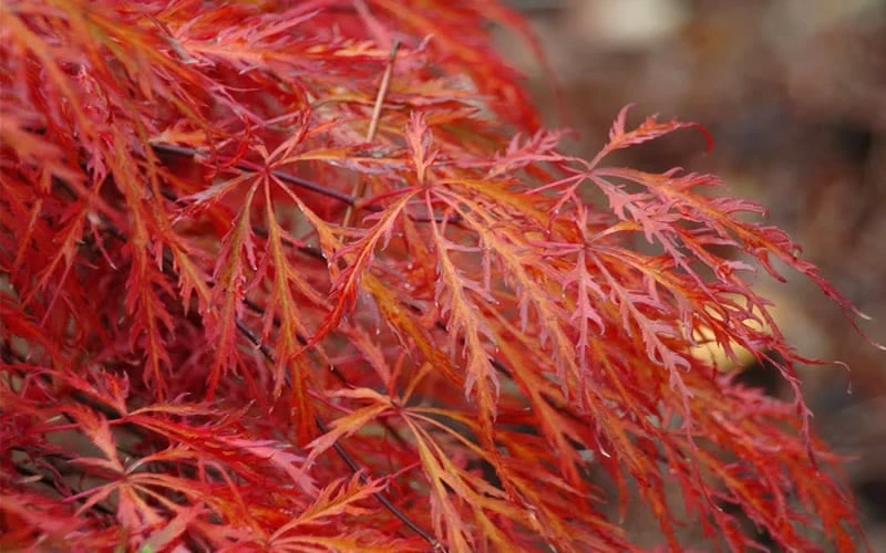 Be one of the first to have this magnificent new introduction available online only at Wilson Bros Gardens. The Firefall Japanese Maple is an absolutely beautiful Acer palmatum dissectum with finely dissected, ribbon-like red leaves with a hint of orange on a mounding form and graceful cascading branches. Foliage color intensifies in fall appearing as brilliant glowing embers. Maturing over time to 6 to 8 feet tall and 8 to 10 feet wide, Firefall’s broad mounding form makes for a focal point specimen plant in the landscape or as a potted patio tree. Grow as a large mounding shrub or remove lower branches to form a highly attractive small tree. One of a few Japanese maples that has tolerated full sun well in our trials. That said, in zone 7b to 9a we suggest some filtered sun or dappled shade during the mid-afternoon hours.