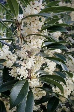 Unbelievably fragrant and also very attractive, the Fortune’s Osmanthus, or Fortune’s Tea Olive, is a hybrid of Osmanthus fragrans and Osmanthus heterophyllus. As with other Tea Olive’s, Fortune’s produces abundant clusters of tiny white flowers in fall. The flowers might be small but they pack a punch when it comes to fragrance, filling the air in a front or back yard with sweet, heavenly aroma. This one has smaller, more lustrous leaves and a finer texture than Osmanthus fragrans, with juvenile leaves being toothed around the edges and adult leaves being smooth. A beautiful and easy-to-grow broadleaf evergreen that can be grown as a large shrub for hedges and screens or lower branches can be removed to form a highly attractive focal point specimen tree.