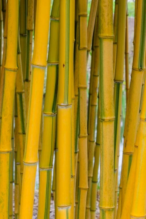 A rare and beautiful collector species and exceptionally cold hardy, Green Groove Bamboo has unusual yellow and green striped canes that grow very dense to give you a great, colorful privacy screen. Bright yellow coloration of the canes with the green stripe in the sulcus grooves is absolutely beautiful. Even more, its dark foliage contrasts wonderfully with the yellow canes. A fast grower to 25 to 30 feet tall in warmer climates and 15 to 25 feet in cooler climates, this bamboo forms a thick grove of 1.5 to 1.75 inch diameter culms. Spectabilis likes as much sun as you can give it for best coloration but will grow in part shade. Handles windy sites better than Yellow Groove Bamboo and is cold hardy to -15°F.