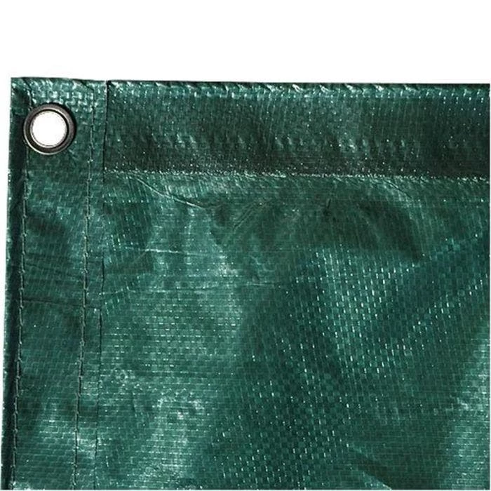 The tough, all-purpose utility cover. 4.5 oz polyethylene construction for toughness, tear-resistance, and dependability. Brass plated steel grommets every 3′ with rope sewn into hem. Heavy 9-10 mil thickness. Used for truck or ground cover, storage and weather protection. Forest green in color.
