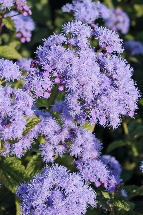 Growing 3 to 3.5 feet tall and spreading 2 feet or more, Hardy Ageratum excellent for naturalizing along sunny to partially shaded woodland borders, in wild flower gardens, or the periphery of stream of pond.