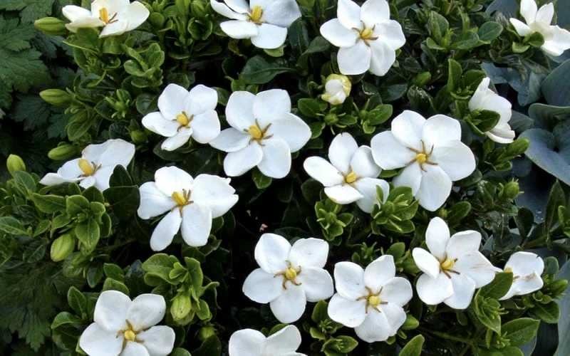 Daisy Gardenia produces an abundance of fragrant, single, daisy-like white flowers in late spring that nearly cover the foliage on somewhat dense, mounding plants to about 3 feet in height with an equal spread. Make sure to plant this fragrant wonder near patios, decks, porches and other outdoor living spaces.
