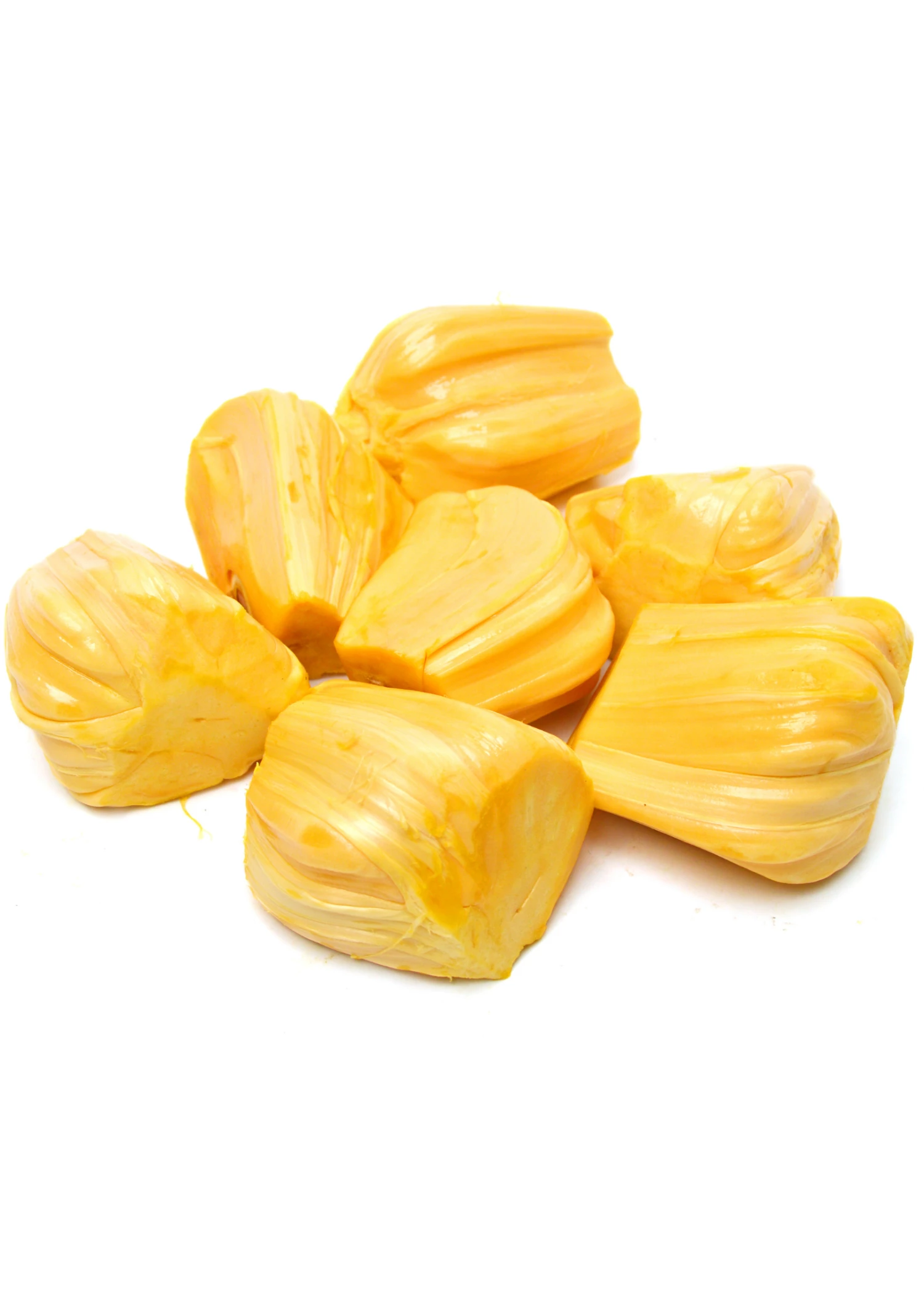 On average, a Jackfruit weighs about 35 pounds but in it’s native climate have reportedly been found to weigh over 100 pounds! Not only does Jackfruit have an incredibly unique look and flavor, but it’s also a rich source of vitamin, minerals, phytonutrients, carbohydrate, electrolytes, fiber, fat and protein. It contains calories but no cholesterol or saturated fats. Jackfruit is typically eaten fresh. Extra fruit can be frozen for healthy smoothies or made into a variety of products, sauces, or even chips!