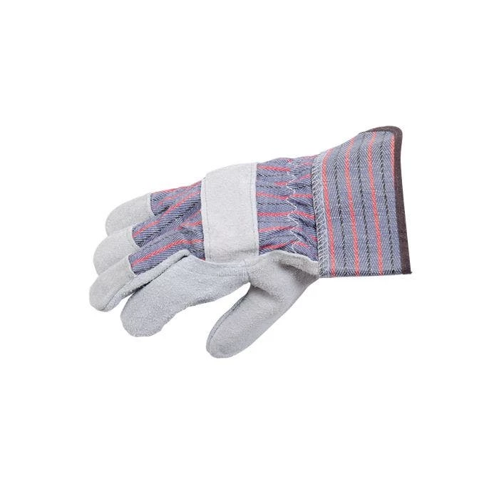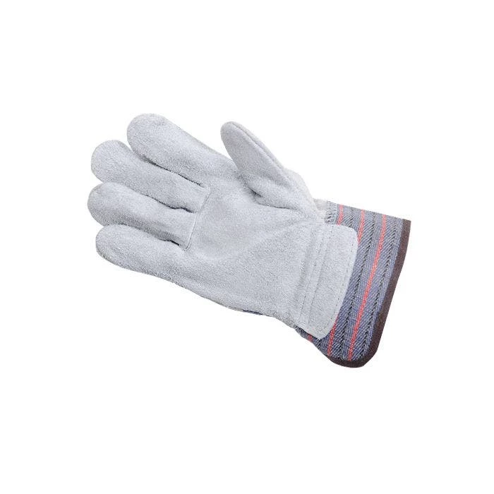 Gray suede cowhide leather with 4″ rubberized safety cuff and wing thumb.