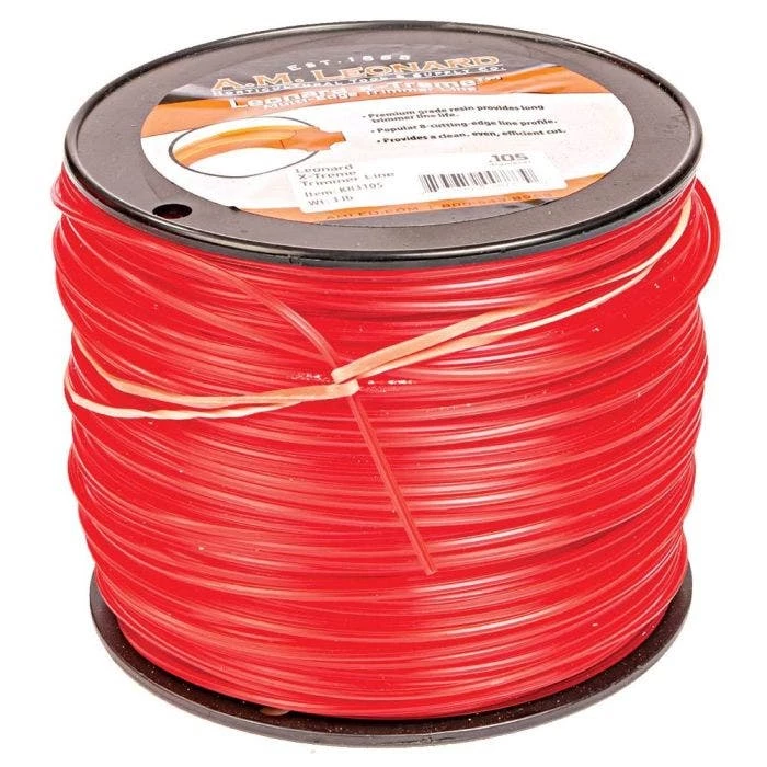 We make our Leonard Trimmer Lines using a premium-grade resin. Choose from either .095-inch, or .105-inch diameter lines below. Pick from one of three types of trimmer line: round, cross, or twisted. Round trimmer line provides increased durability at the cost of reduced cutting speed. Our X-Treme™; cross-shaped trimmer line cuts quickly and evenly thanks to its 8 cutting edges. Or, for optimal performance, try our premium Aero-Glide™; twisted line We make our trimmer line to last. Our premium-grade resin material prolongs the life of the line. We package this line in a 3-pound spool. Also available in a 1-pound donut and a 5-pound spool.