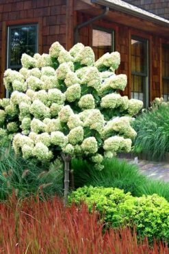 Growing in an upright form up to 10 feet tall and 6 feet or so wide, the Limelight Hydrangea makes an impressive single trunk tree form specimen. It’s excellent for use in small groupings or to mark each side of an entryway. Also a nice addition to mixed flowering shrub borders, as an accent in home foundation plantings, as a centerpiece in perennial gardens, and in large pots, planters or other containers of 18 inches or more in diameter. A fine addition to white color theme gardens and cut flower and cottage gardens.