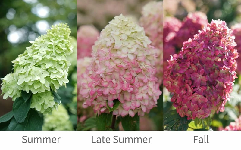 Don’t have room for the 8 to 10 foot tall classic Limelight Hydrangea? Meet Limelight Prime, a new introduction that grows to only 5 to 6 feet tall and 4 feet wide, which makes it a perfect fit for smaller garden spaces and pots, planters and other containers. There are other differences as well. The flowers on Limelight prime emerge earlier and though they start out the same chartreuse color as Limelight fade to pink by late summer and finally to a cheerful deep pinkish-red in fall. The large flower clusters are held on very sturdy stems that won’t flop and its long bloom period means you’ll enjoy colorful flowers for over 3 months every year. Excellent as an eye-catching specimen, natural flowering hedge, or as the backdrop to lower growing perennials and shrubs. Cut flowers are perfect for both fresh and dried flower arrangements.