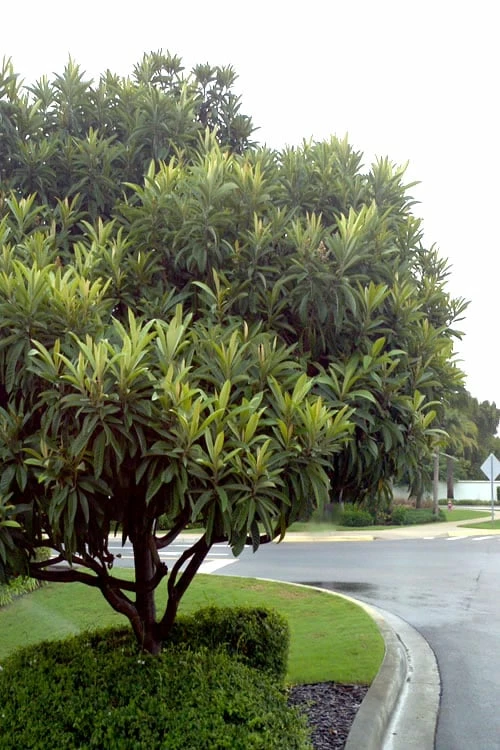 Loquat trees grow reasonably well in most soil types except for heavy, compacted clay or very infertile soils. They grow and produce the best fruit in a moist but well-drained soil that is rich in organic matter. In soil with low fertility it’ll be worth your time to mix in some organic compost to the native soil. They like the soil to hold a good supply of water, especially when the fruits are developing in summer, but not so much water that the soil stays constantly soggy or wet, which can be problematic. Soil pH does not seem to matter as Loquat is known to perform well in both acid or alkaline conditions. If fruit production is a consideration in USDA Zone 8, Loquats should be planted on the south or southeast side of the home to obtain maximum late winter and early spring cold protection from the house itself. Otherwise, plant it wherever you want in full sun to part shade. Trees growing in more sun will be more dense. We suggest at least 5 hours of direct sunlight per day.