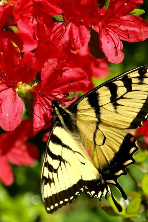 Winner of the Southeastern Rhododendron Award in 2010, which is quite an honor when considering that there are thousands of azalea varieties in existence, Midnight Flare Azalea features an explosion of blooms in an almost indescribable shade of red like no other. It’s very difficult to capture the color well with a camera, but we’d say it’s a tomato red with some very subtle coralish to purple undertones. Some suggest there’s no other azalea with as deep and dark red flower color. One way or another the flowers have a color all their own and are sure to get get a lot of oohs and ahhs when blooming in spring. Deep green foliage is attractive year round.