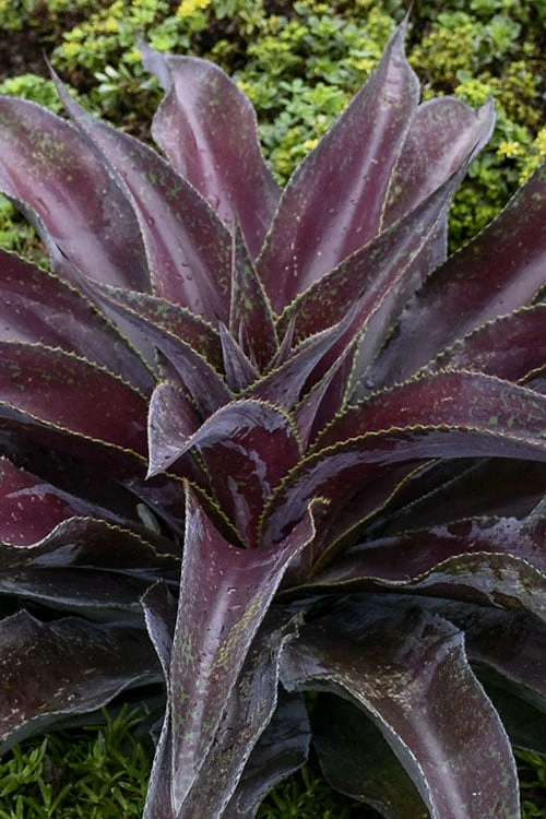 ‘Mission To Mars’ Mangave gets its name due to the intense red coloration of its thick leaves that are heavily speckled and spotted with burgundy red, bleeding into each other for an overall red appearance. The best red coloration comes with 7 hours or more of direct sun or UV light per day. The long and arching leaves curve downward forming a mound. The margins of the leaves curl upward showing off cinnamon colored spines, which complement the red. Excellent in pots or garden beds and sure to be a conversation piece!