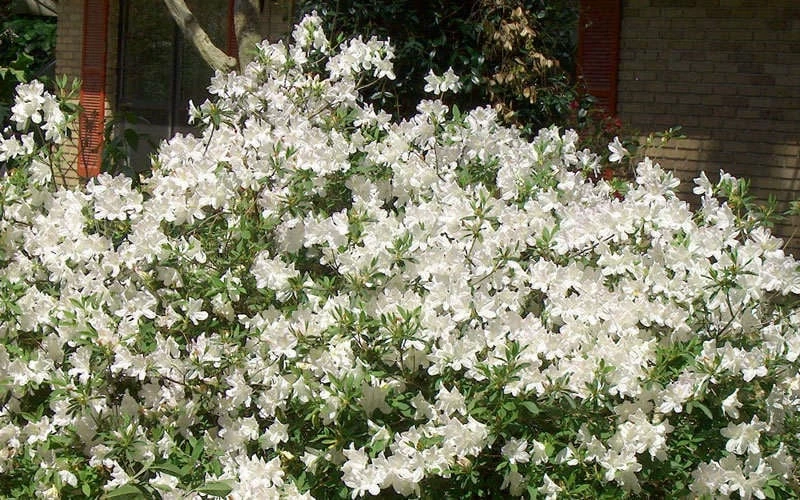 One of the best of the sun and heat-tolerant evergreen Southern Indica Azaleas, ‘Mrs. GG Gerbing’ displays LOADS of large, 3 to 4 inch showy funnel-shaped bright white flowers that nearly cover the foliage on large, mounding evergreen shrubs 6 to 8 feet tall and wide. A fine selection for a natural hedge or a sunny to partially shaded woodland border.