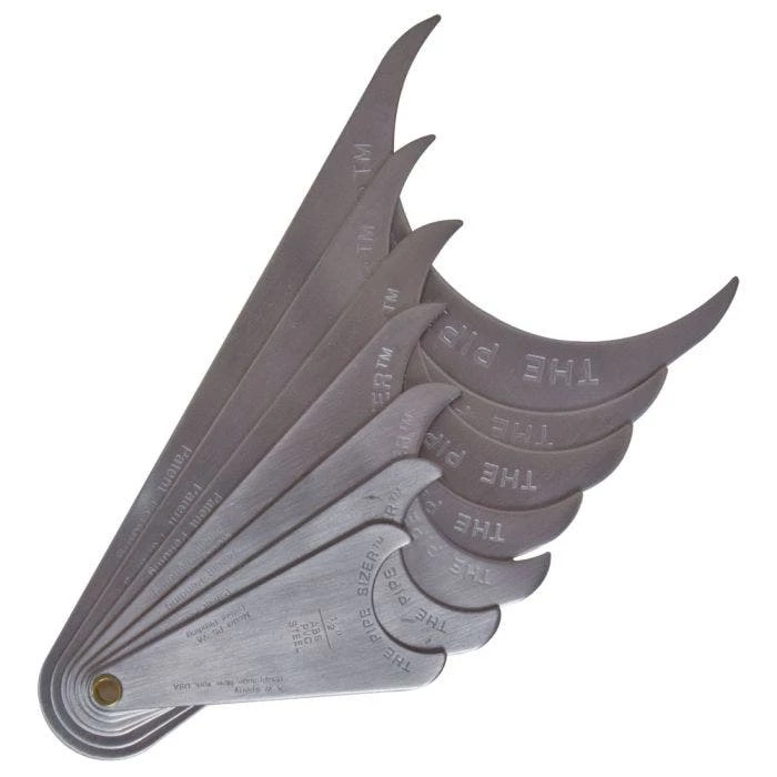 - Measures 7 different sizes of pipe (1/2 in, 3/4 in, 1 in, 1 1/4 in, 1 1/2 in, 2 in, 2 1/2 in).