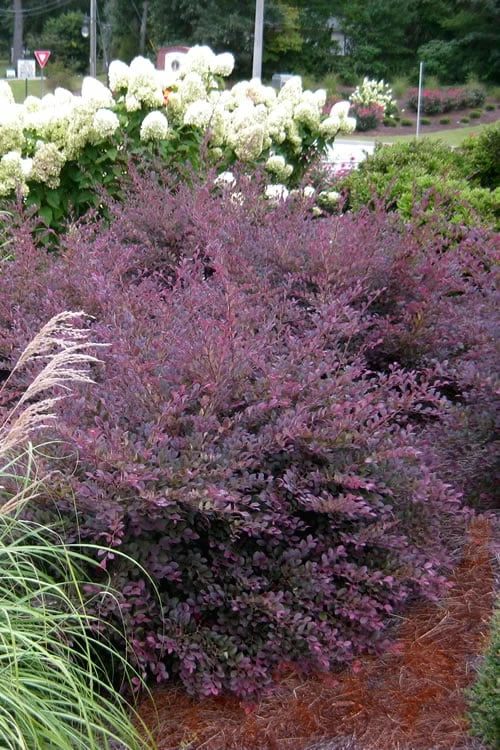 Purple Diamond Loropetalum boasts the most intense purple foliage color of any plant on the market! Vibrant pink, witchhazel-like, fringe flowers are heavy in spring, appear occasionally in summer, and again in fall. The deep purple foliage provides a stunning contrast for the bright pink flowers. Mature height is about 6 feet with an equal width however plants respond every well to pruning so can be can be maintained at half that size.