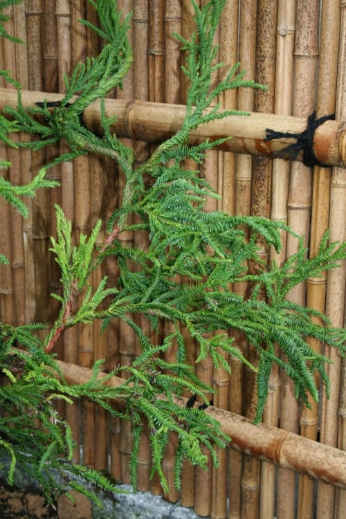Growing 25 or more feet tall and 6 feet wide at maturity, the Rasen Sugi Cryptomeria is ideal for use as a focal point specimen or in groupings in sunny landscape borders or to frame corners, accentuate entryways or as espalier (trained to grow flat against a wall) in home foundation plantings. Also nice as a solo or mixed with trailing plants in container gardens. A fine addition to the conifer garden.