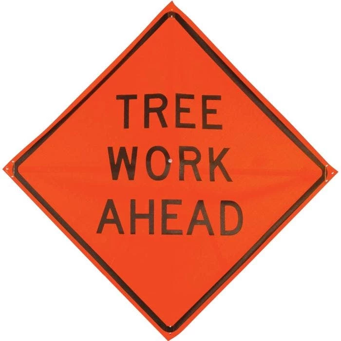 Durable Non-Reflective Mesh Sign for Safe Tree Work Ahead