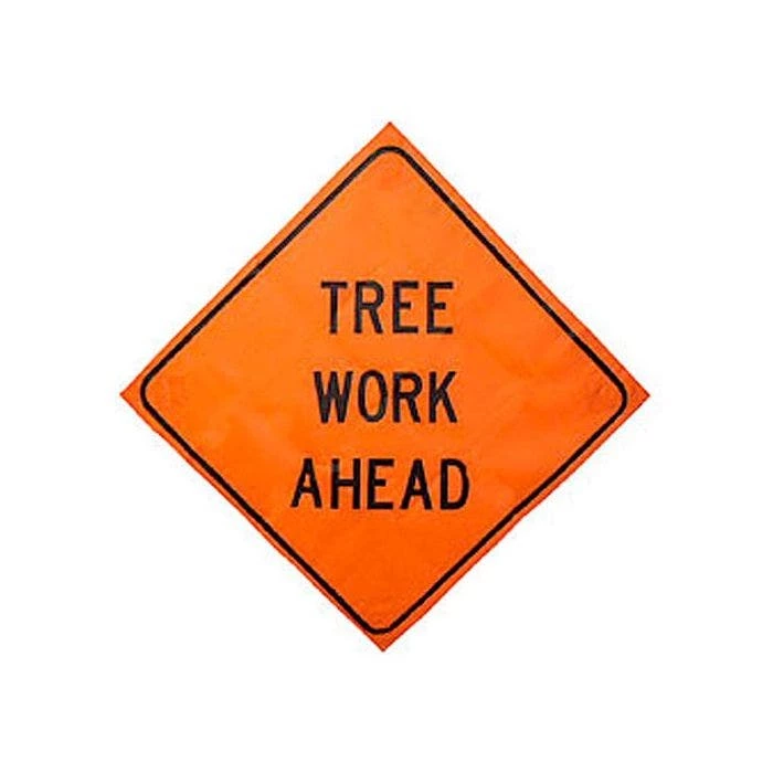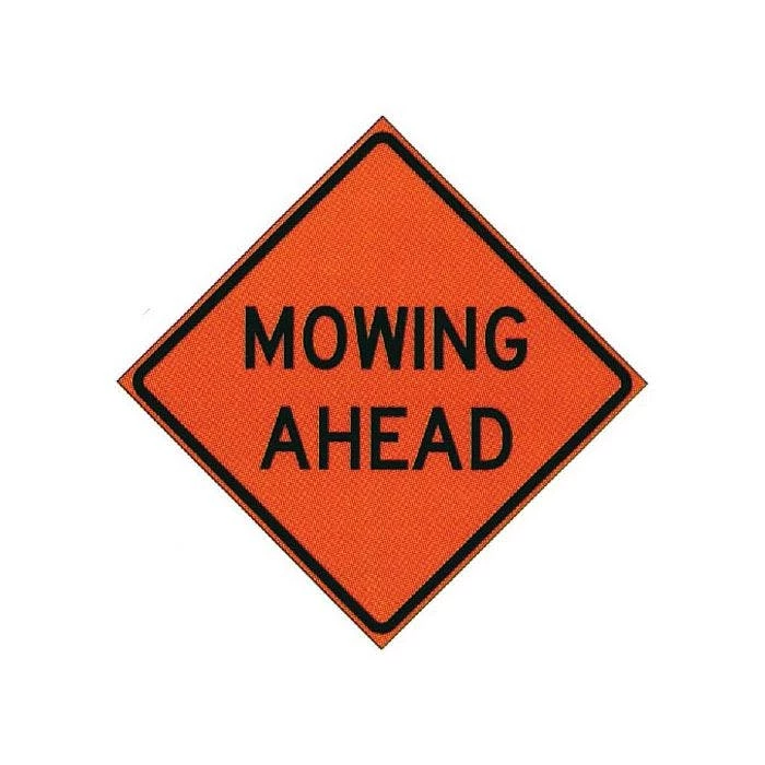- 36″ diamond-shaped (rotated square) non-reflective orange woven polyester with bold black block letter print