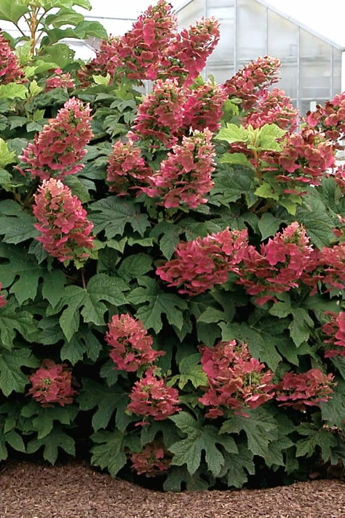 Growing in a mound to only 3 to 4 feet tall and 3 to 5 feet wide, Ruby Slippers Hydrangea is an excellent selection for smaller garden spaces where larger oakleaf hydrangeas won’t fit. Ruby Slippers is ideal for use as an accent or specimen, in groupings or mass plantings, or as a low natural hedge in landscape and flowering shrub borders or home foundation plantings. Its smaller size makes it perfect for use in pots, planters and other containers of 14 inches or more in rim diameter. Right at home in the partially sunny woodland border or cottage and cut flower gardens. Also a nice addition to white color themed gardens and tropical-look gardens.