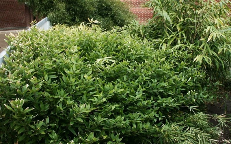 Ruscus Bamboo is a running bamboo, which means it spreads, but is much slower spreading than other running bamboo. Therefore, we consider it a clumping bamboo similar in habit to many ornamental grasses. Bamboo can be controlled in a small area (a normal city yard) simply by mowing or stepping on the young shoots. New shoots of some bamboo can also be used for culinary purposes and cooked, much like asparagus. Keep in mind that running bamboo only puts up new shoots for a short time each year and, when they are “shooting,” the new plants are very fragile and easy to destroy. Root pruning or a Bamboo Root Barrier are other methods to control spread.