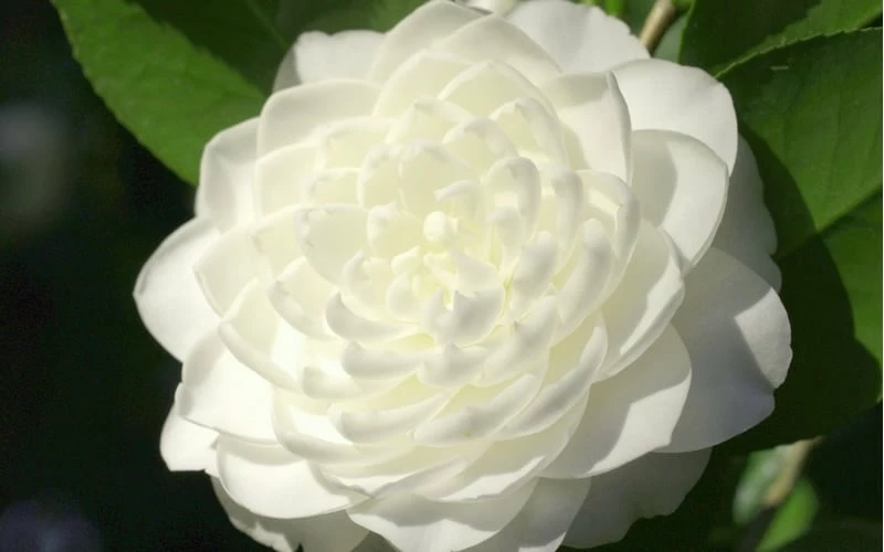 Among Camellia enthusiasts Sea Foam is recognized as one of the most elegant of all Camellia japonica. Appearing in late winter through early spring its lovely, perfectly formed formal double flowers with pure white petals are breathtaking. The flowers resemble those of double Gardenia and stand out wonderfully in stark contrast to the large, lustrous, dark-green leaves. An excellent cut flower and beautiful in indoor flower arrangements or float just one in a bowl of water.