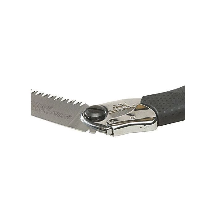 Compact lightweight folding saw with 5-inch blade that will take up very little room in your pocket or backpack. This saw features rust-resistant, hard chrome-plated, taper-ground blade with an impulse-hardened non-set tooth design for greater cutting efficiency.The precision-ground, razor sharp blade provide fast, clean and smooth cutting. The blade locks securely into one of two open positions, in line with the handle and flush cutting.