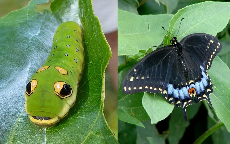 Spicebush Butterfly Caterpillar and Butterfly