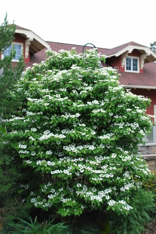 Growing 8 to 10 feet tall and 6 to 8 feet wide at maturity, the Summer Snowflake Viburnum can be grown as a large shrub or lower branches can be removed to form a very attractive small tree ideal for use as an eye-catching specimen or groupings in landscape and flowering shrub borders. Also useful to frame corners of homes and entryways or as espalier (trained to grow flat against a wall) in home foundation plantings . A welcome addition to cut flower gardens, white theme gardens, wildlife gardens, and cottage gardens.