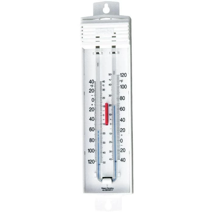 How cold was it last night? Now you’ll know for certain. Unique two-reading thermometer records highest and lowest temperatures since previous setting.