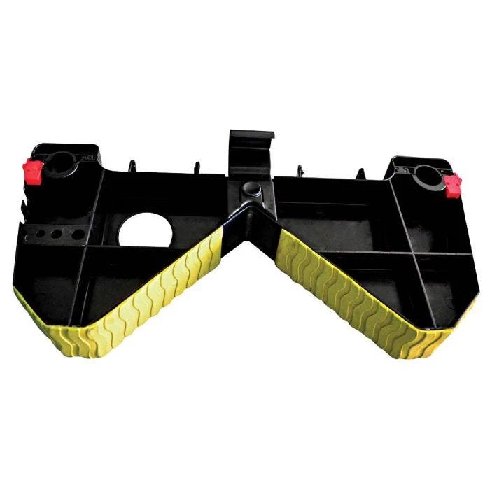 The Telesteps Standoff Tool Tray fits all Telesteps Telescoping Combination Ladders and Telesteps Telescoping Extension Ladders. These trays feature a durable plastic construction with a rubberized edge. The center has a 90-degree cutout for outside corners and the edges have 45-degree angles for inside corners.
