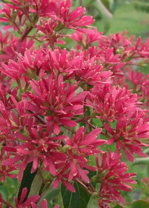 With its 4-season appeal, this underused, easy-to-grow 8 to 10 feet tall small tree is sure to bring a stunning addition to any landscape in USA Zones 5 through 9, which covers most of the United States. In spring, attractive, deeply veined green leaves emerge that are twisted on the tips. Following in mid to late summer, when we need color in the landscape, are numerous clusters of fragrant white flowers the butterflies and hummingbirds will thank you for. The flowers are then replaced with striking, cherry-red bracts that persist though fall. Attractive, peeling tan bark provides winter interest. A truly outstanding tree that deserves a spot in every landscape where it will grow!