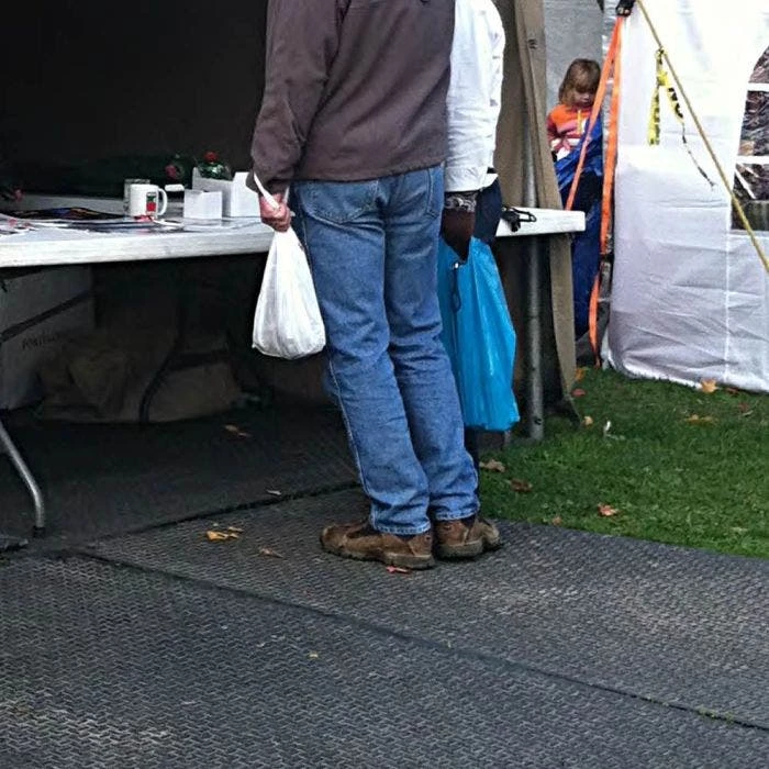 The most versatile ground protection mats in the industry! The Double-Sided Tread VersaMats feature a Slip-Resistant flat tread on one side and the diamond plate tread on the other. Ideal for use on and off-road, from industrial equipment to pedestrian foot traffic. The flat and low profile Slip-Resistant tread reduces trip hazard and provides excellent grip for foot traffic and heavy equipment. The Slip-Resistant Flat tread is safe for use face down on paved surfaces. For events, to protect turf areas from excessive foot traffic, use the Slip-Resistant flat tread up to create a safe walkway or common area. And the other side in the same Diamond Plate tread design as AlturnaMats offers the same list of off-road applications.