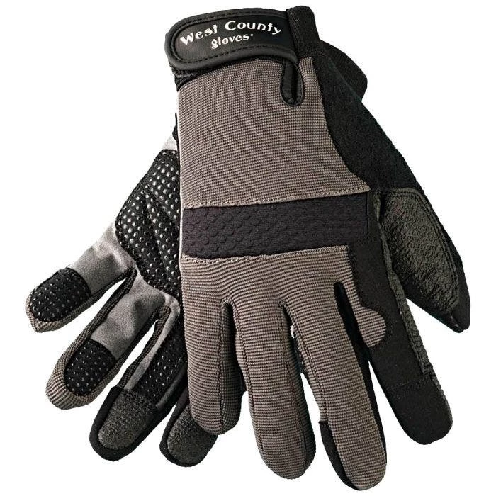 West County Men?s Landscaping Gloves combine safety and comfort into a medium-weight glove. These gloves feature Dupont™; Kevlar® reinforcements at the palms and middle fingers. A foam palm insert provides shock absorption. Gripper dots on the palms and finger tips give you an outstanding grip in both dry and wet conditions. West County Landscaping Gloves protect your knuckles with flexible, compressed neoprene. A breathable four-way spandex mesh on the top of the glove provides increased airflow, reducing sweat buildup. These gloves also feature a terry cloth brow wipe at the thumbs. Adjustable tabs make it easy to put the gloves on and to remove them. West County Landscaping Gloves are great for any job where abrasions or punctures are a risk. Their sturdy construction makes them extremely resistant to tearing yet still provides excellent dexterity. These gloves also resist heat, water, oil, and dirt. They are both comfortable and easy to care for as well. Just machine wash and air dry. The high-tech Kevlar® fabric is, gram-for-gram, five times stronger than steel. This material allows for extended wear and increases the overall protection of these gloves. In addition to their superior comfort and protection, West County Landscaping Gloves are also eco-friendly. West County makes the spandex material out of recycled plastic bottles. They even manufacture the hang tags using 100% post-consumer waste!
