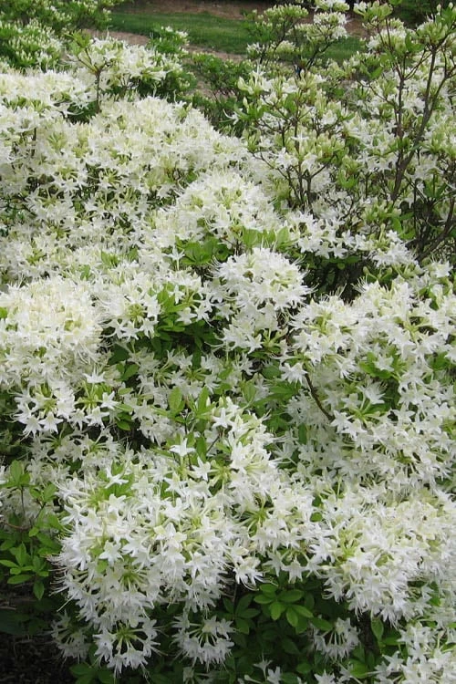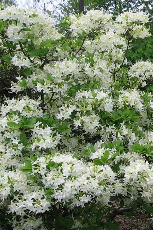 Growing 6 to 8 feet tall and equally as wide, the White Alabama Native Azalea is ideal for use as a specimen or in groupings in woodland borders or other areas of the landscape that provide dappled shade and moist but well-drained soils rich in organic matter. Can be grown as a shrub or lower branches removed to form a highly attractive small tree. A fine addition to fragrance gardens, pink theme gardens, Azalea gardens, woodland gardens, native plant gardens, and cottage gardens.