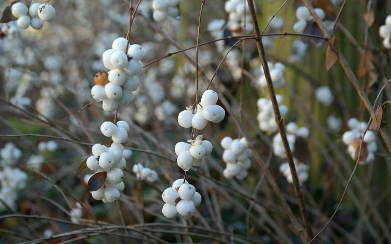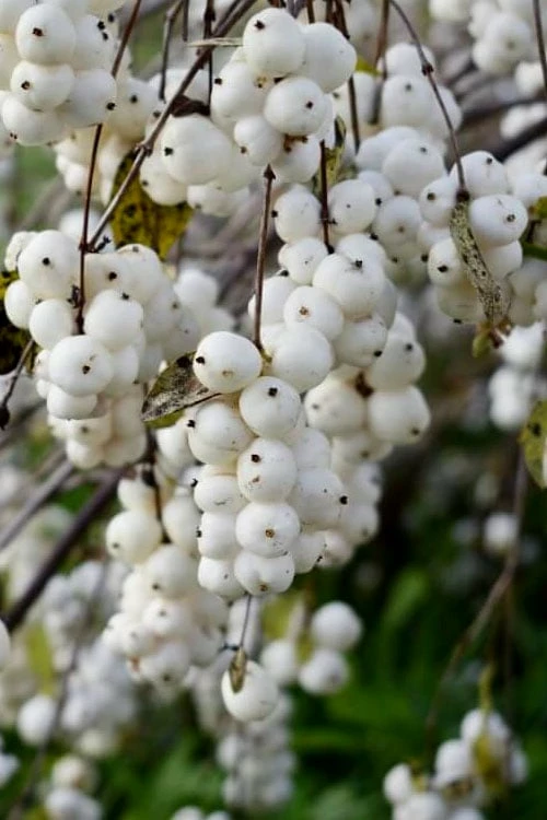 Adored for its highly ornamental pure white berries, the White Snowberry is an amazingly adaptable North American native deciduous flowering shrub anyone in USDA Zones 3 to 7 can easily grow and enjoy. In early summer an abundance of small, bell-shaped, soft-pink flowers appear. Though the flowers are cute, they are inconspicuous for the most part, but the butterflies, hummingbirds and beneficial pollinators will surely enjoy them. The real prize is the abundant clusters of showy, pearl-like, snow-white berries that persist well into winter. The birds and small mammals will thoroughly enjoy these. The arching branches are clothed in blue-green, elliptical, eucalyptus-like leaves that remain attractive from spring to frost. Amazingly adaptable and non-demanding, plant this one in full sun or full shade and moist to dry soils of average to even poor fertility. That said, the more sun the plant gets the more berries it produces!
