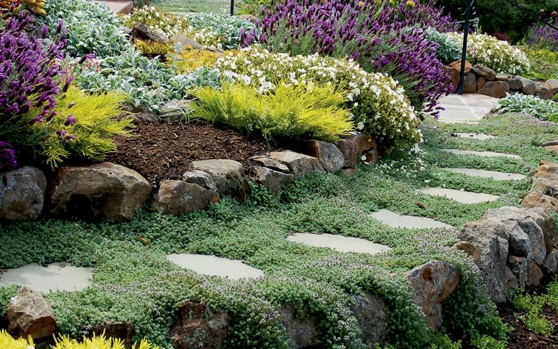 Spacing: 18″ apart for mass plantings; 6-12″ apart between stepping stones